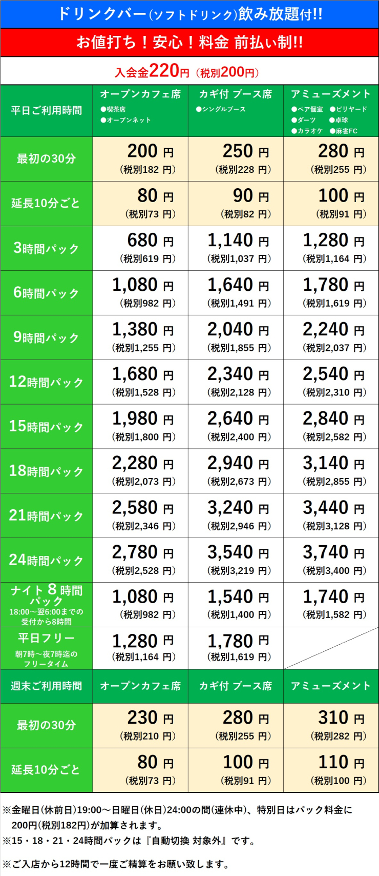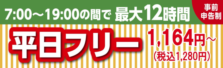 平日7時~19時限定のお得な12Hフリータイムや、18時~6時の受付で