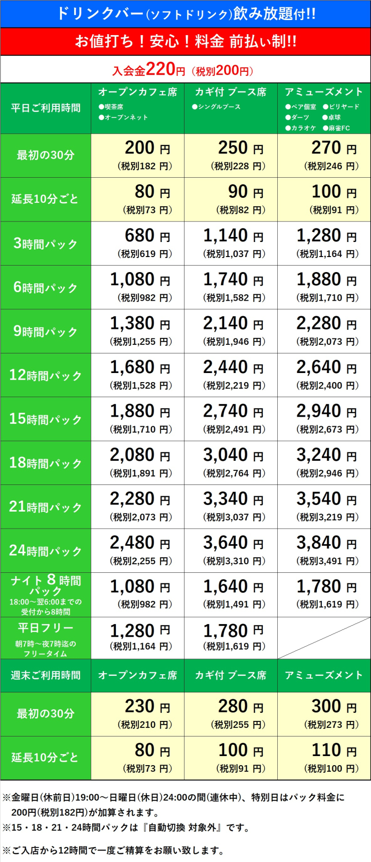 平日の朝7時~夜19時までお得にご利用いただける、平日フリータイムも大好評実施中!